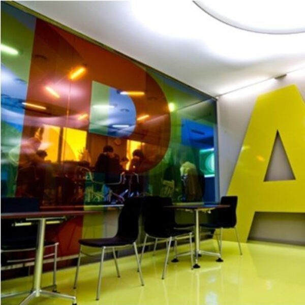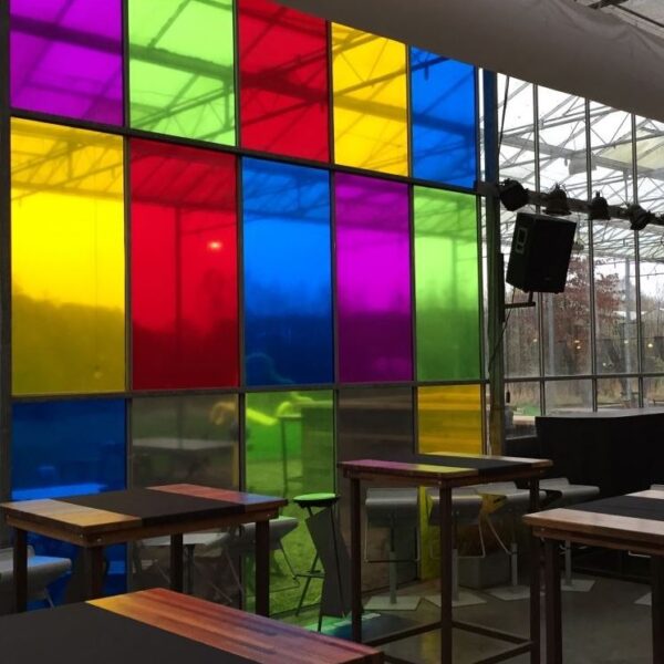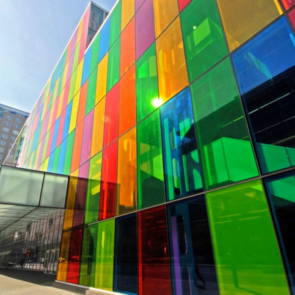 Transparent color film Aslan CT 113 for striking glass design. For architecture and interior design. See-through, much light, brilliant color effect.