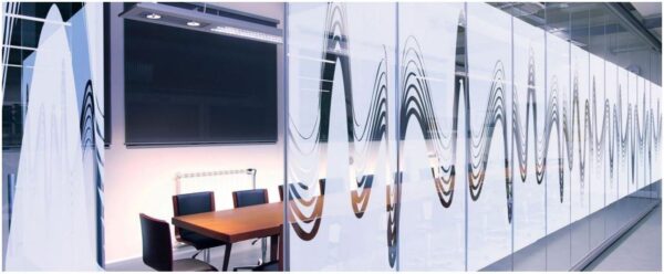 The design of the Decorum privacy film consists of modern spatially propagating periodic waves. Windows and glass panes get a high-quality appearance with impressive wave accents in milk glass optics. The window film visually separates rooms with its design elements and at the same time ensures an elegant window decoration. Even after several years of use, the film can be removed without leaving any residue thanks to its special adhesive. It is equipped with a scratch-resistant surface, a prerequisite for easy cleaning and a long service life.