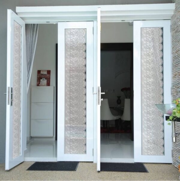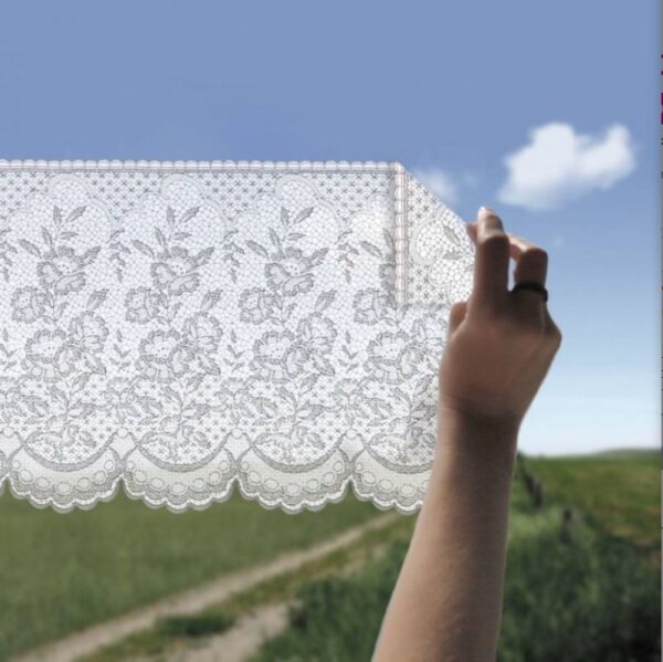 White lace – an elegant design for modern privacy protection and glass decoration. This electrostatic foil for windows and glass panes is installed without glue in a few steps. The design consists of a white lace band made of high-quality plastic. The foil is ideally suited for windows and glass surfaces in kitchens, living rooms, kindergartens, doctors’ offices, shop windows, offices. The privacy is elegantly protected against unwanted insights. The high quality makes the film easy to clean and ensures a long service life.