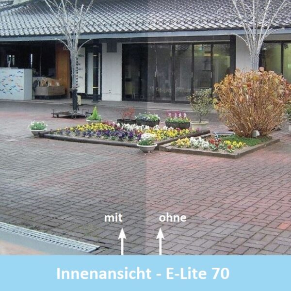 The sun control film E-lite 70 transparent is self-adhesive and is installed on the interior window side. It combines a clear view with effective heat protection. Listed buildings in particular can benefit from an unchanged building appearance due to their neutral appearance. The neutral high-performance film ensures maximum daylight and minimal heat development. The innovative solar control ensures that rooms do not heat up uncomfortably in summer. The room temperature becomes comfortable and well-tempered. Energy consumption and running costs for air conditioning in air-conditioned offices, hotels and conference centers can be permanently reduced. The energy efficiency of the installed window glazing is sustainably improved.