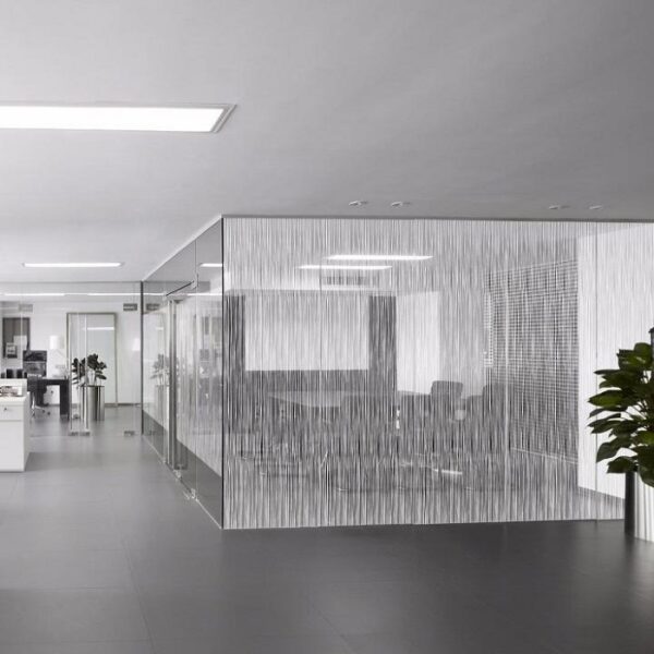 The window film is self-adhesive and is subsequently installed to windows and glass panes. The vertical lines create a lively and decorative appearance. This creates an elegant privacy screen in the right places. Glass partitions, doors and windows made of glass are elegantly designed with the window decoration and rooms are visually separated from each other. Areas of application for window film are smooth window panes in living rooms, offices, doctor’s offices, hotels, train stations and airports.